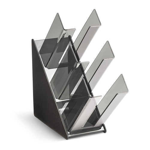 Vollrath3 High Countertop Lid Organizer, 6"W x 12"D x 17-1/2"H, accommodates lids & cups 2-5/8" - 4-3/4" dia., black ABS & smoked acrylic, NSF, Mad...
