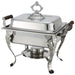 Whether you're hosting a large event or a small gathering, the Crown Chafer 4 qt. half size square with dome cover ensures your food presentation is both stylish and functional. Its robust construction and thoughtful design make it a reliable choice for any restaurant looking to elevate their service.