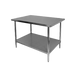 Elevate service with Thunder Group's SLWT43048F Work Table. This stainless steel top table is designed to enhance efficiency and functionality in commercial restaurant settings. With its 18 gauge/430 stainless steel flat top and turn-down edges, this work table provides a durable and easy-to-clean surface for food preparation and other tasks. The galvanized steel adjustable undershelf and legs offer additional storage space and stability, while the 1" adjustable plastic bullet feet ensure level positioning on any surface. Thunder Group's SLWT43048F Work Table is NSF certified, guaranteeing its quality and suitability for use in professional kitchens. Whether you need a sturdy work surface for chopping vegetables or a convenient storage solution for kitchen essentials, this work table is a reliable choice. Trust Thunder Group to deliver the durability and functionality your restaurant needs.