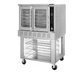 Introducing the American Range ME-1 Convection Oven, Electric. Cooking essentials for gourmet precision meals. This single-deck convection oven is perfect for commercial restaurant use, offering bakery depth and manual controls for precise temperature adjustments. With a temperature range of 150 F to 500 F and a one-hour timer, you can easily bake, roast, and broil a variety of dishes to perfection. The 2-speed fan ensures even heat distribution, while the porcelain liner provides easy cleaning and durability. The 50/50 solid doors keep the heat inside, while the stainless steel front, sides, top, and 28" legs ensure long-lasting performance. With a power output of 12.0kW and ETL certification, this convection oven is both powerful and safe to use. Made in the USA by American Range, this electric convection oven is a reliable and efficient addition to any commercial kitchen.
