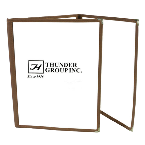 Enhance adaptability with Thunder Group, PLMENU-3BR, Menu Cover. This triple-fold menu cover is designed to meet the needs of commercial restaurants. Made with flexible plastic laminate in a rich brown color, it adds a touch of elegance to any dining establishment. With a size of 8-1/2" x 11", it can accommodate standard menu sheets, allowing for easy customization and updates. Its durable construction ensures long-lasting use, even in high-traffic environments. The Thunder Group PLMENU-3BR menu cover is a practical and stylish solution for presenting menus in a professional and organized manner. Elevate your restaurant's image and impress your customers with this versatile menu cover.