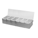 Elevate standards with Thunder Group's SLCN006 Bar Condiment Holder. This countertop design is perfect for commercial restaurant use, offering convenience and organization. With its 6-compartment acrylic hinged lid, you can easily store and access various condiments, ensuring efficiency during busy service hours. The stainless steel base adds durability and a sleek look to any bar or countertop. Thunder Group, a trusted name in the industry, guarantees the quality and authenticity of this product. Whether you're running a bustling bar or a high-end restaurant, this bar condiment holder will streamline your operations and enhance the overall dining experience. Don't settle for anything less than the best, choose Thunder Group's SLCN006 Bar Condiment Holder for your establishment.