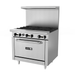 Restaurant Range, gas, 36"W, (6) 30,000 BTU open burners, removable cast iron grates, manual controls, standard oven, stainless steel high shelf with reinforced backguard riser, pressure regulator, stainless steel front, sides, backguard & landing ledge, 6" adjustable steel feet, 210,000 BTU, cETLus, ETL-Sanitation, CSA, Made in North America
