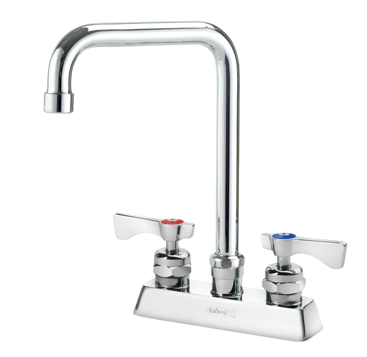 Kitchen innovation at its best, the Krowne Metal 15-331L-L-E3 Deck Mount Faucet is a must-have for any commercial restaurant. This high-quality faucet is designed to enhance efficiency and functionality in the kitchen. With its 4" deck mount and 6" double bend spout, this faucet provides easy access to water for various tasks. The lever handles offer precise control over water flow, allowing chefs and staff to quickly adjust the water temperature and pressure. The 1.0 GPM aerator ensures a steady and consistent flow of water, saving both water and energy. Made by Krowne Metal, a trusted name in the industry, this deck mount faucet is built to last and withstand the demands of a busy restaurant kitchen. Upgrade your kitchen with the Krowne Metal 15-331L-L-E3 Deck Mount Faucet and experience the difference in performance and durability.