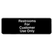 Introducing the Thunder Group PLIS9321BK Sign, Compliance, a must-have for commercial restaurants! Foster reliability with this Information Symbol Sign that clearly designates restrooms for customer use only. With its self-adhesive backing, installation is a breeze. The white lettering on a black background ensures high visibility, even from a distance. This sign is specifically designed for commercial restaurant use, meeting all compliance requirements. Enhance the professionalism of your restaurant and provide clear directions for your customers with this durable and eye-catching sign. Order your minimum of 12 signs today and create a welcoming and compliant environment for your patrons.
