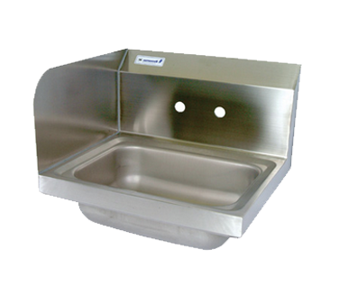 Cook with confidence with the BK Resources BKHS-W-1410-LS Hand Sink. This wall-mounted hand sink is designed specifically for commercial restaurant use, ensuring durability and functionality. The 304 stainless steel construction guarantees long-lasting performance, even in the busiest kitchen environments. The 14" wide x 10" front-to-back x 5" deep bowl provides ample space for handwashing, while the 4" O.C splash mount faucet holes make it easy to install a faucet of your choice. The marine edge and side splash on the left help contain water and prevent spills, keeping your kitchen clean and safe. This hand sink also includes a basket drain and wall mounting hardware for easy installation. NSF certified, this BK Resources hand sink meets the highest standards of sanitation and hygiene. Upgrade your restaurant's handwashing station with the BK Resources BKHS-W-1410-LS Hand Sink.