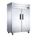 Freezer, reach-in, two-section, 55-1/3"W x 34"D x 80-3/8"H, top mount self-contained refrigeration, digital temperature control, 0°F (-18°C) to -8°F (-22°C) temperature range, automatic defrost, (2) solid self-closing doors, equipped with locking doors, (8) adjustable shelves, stainless steel interior & exterior, 5" casters (2 braked), R290 refrigerant, 1-1/3 HP, 110v/60/1-ph, cETLus, ETL-Sanitation