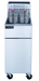 Fryer, LP gas, floor model, 15-1/2"W x 32-7/8"D x 45"H, 40 lb. capacity, (3) cast iron tube burners, millivolt control, 200° to 400°F temperature range, (2) twin baskets, right hand hinged door, cabinet base, (4) casters, 90,000 BTU, CSA-Sanitation, cCSAus