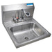 Achieve culinary excellence with the BK Resources BKHS-D-1410-STPG Hand Sink. This wall-mounted hand sink is designed to meet the rigorous demands of a commercial restaurant. The 14" wide x 10" front-to-back x 5" deep bowl size provides ample space for handwashing, ensuring proper hygiene in the kitchen. The 4" OC splash mount faucet holes with a 3" gooseneck spout (BKF-W-3G-G) make it easy to control water flow and prevent splashing. The color-coded hot and cold indicators and 1/4 turn ceramic cartridges add convenience and durability to the sink. The sink also includes a basket drain with a crumb cup and wall bracket for easy installation. Made of 304 stainless steel, this hand sink is NSF certified, guaranteeing its quality and safety. Upgrade your restaurant's handwashing station with the BK Resources BKHS-D-1410-STPG Hand Sink and ensure a clean and sanitary environment for your staff and customers.