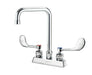Take your kitchen to the next level with the Krowne Metal, 15-331L-W-F1, Deck Mount Faucet. This high-quality faucet is designed to meet the demands of a commercial restaurant setting. With its Royal Series 4" deck mount and 6" double bend spout, this faucet offers convenience and functionality. The VR wristblade handles provide easy control and precision, allowing chefs and staff to adjust water flow and temperature with ease. The 0.5 GPM laminar outlet ensures a steady and consistent stream of water, perfect for filling pots and pans or rinsing dishes. Upgrade your kitchen with the Krowne Metal, 15-331L-W-F1, Deck Mount Faucet and experience the difference it can make in your restaurant's efficiency and productivity.