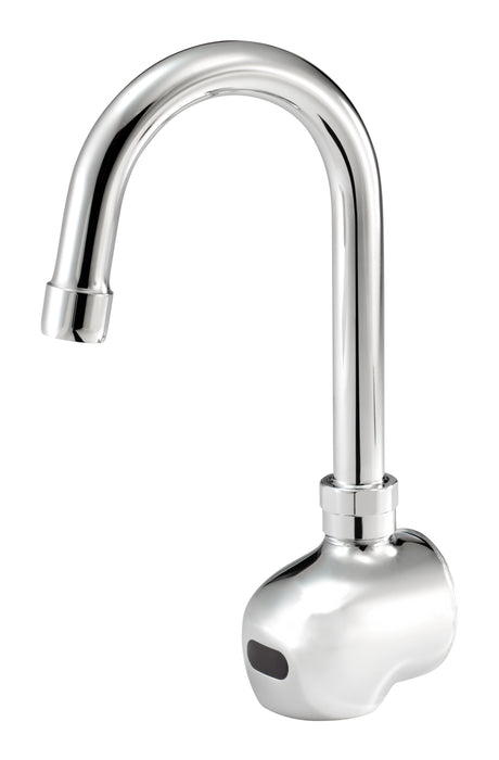 Elevate your dining experience with the Krowne Metal, 16-190, Electronic Faucet. This single hole deck mount sensor faucet is designed to enhance efficiency and convenience in a commercial restaurant setting. With its battery-operated sensor, you can easily control the water flow without the need for manual operation. The 4-1/2" gooseneck and 2.2 GPM aerator ensure a steady and powerful stream of water, perfect for filling large pots or rinsing dishes. The Royal Series Electronic Wall Mount Faucet also features a 3" gooseneck spout, providing ample clearance for any task. Whether you're running a busy kitchen or a bustling bar, the Krowne Metal, 16-190, Electronic Faucet is a reliable and efficient choice that will streamline your operations and enhance the overall dining experience for your customers.