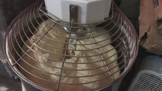 Spiral Dough Mixer, 2-speed, 62 lb flour capacity, 97 lb dough capacity, 50 liter stainless steel bowl with lift cage, timer, geared motor chain drive system, stainless steel frame, swivel casters with brakes, 3 HP, 220v/60/3-ph, UL, NSF, Made in Italy