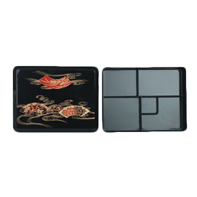 Upgrade solutions with the Thunder Group, JPRB002, Bento Sushi Box. This decorative exterior bento server is designed to elevate your restaurant's sushi presentation. With its fixed inside tray and 5 compartments, it offers a convenient and organized way to serve a variety of sushi rolls, sashimi, and other Japanese delicacies. Measuring 10-1/2" x 8" x 2-1/2", this bento sushi box provides ample space for a generous portion of food, perfect for satisfying hungry customers. Made by Thunder Group, a trusted name in the industry, this bento sushi box combines functionality with style, making it an essential addition to any commercial restaurant. Upgrade your sushi service today with the Thunder Group, JPRB002, Bento Sushi Box.