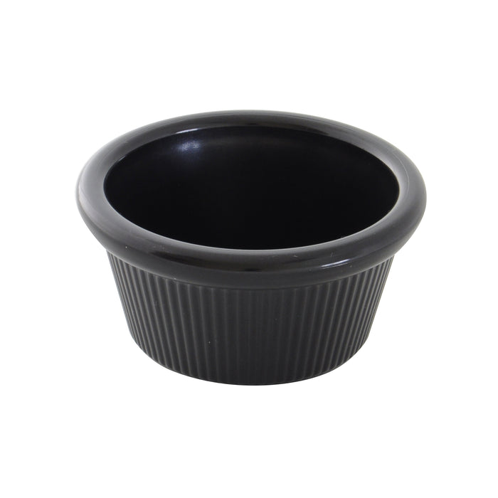 Streamline processes with Thunder Group's PL532BL1 Ramekin / Sauce Cup. This 4 oz., round, fluted cup is designed to enhance the dining experience in commercial restaurants. Made from durable and dishwasher-safe plastic, it is perfect for serving sauces, condiments, and individual portions of desserts. The black color adds a touch of elegance to any table setting, while the BPA-free material ensures the safety of your customers. Whether you're running a fine dining restaurant or a casual eatery, Thunder Group's PL532BL1 Ramekin / Sauce Cup is a versatile and practical addition to your kitchen.