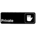 Streamline setups with the Thunder Group, PLIS9303BK Sign, Compliance. This information symbol sign is designed to enhance efficiency and compliance in commercial restaurant settings. With its self-adhesive backing, it can be easily applied to various surfaces, ensuring clear visibility for staff and customers alike. The 9" x 3" size makes it noticeable without being obtrusive, and the white lettering on a black background provides a high contrast that is easy to read. Whether it's indicating private areas or displaying important information, this sign is a must-have for any restaurant striving for professionalism and adherence to regulations. Trust Thunder Group to deliver quality products that meet the demands of the restaurant industry.