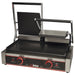 Optimize kitchen workflow with the Winco Sandwich Grill, a versatile and efficient addition to any restaurant's culinary arsenal. This electric countertop double grill, model ESG-2, boasts a 19 x 9 flat cast iron grill surface, perfect for preparing a variety of sandwiches and grilled items with ease. The hinged top plate ensures even cooking, while the power-ready lights provide clear indicators of the grill's status, enhancing operational efficiency.