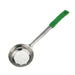 Transform the cooking experience with the Winco Food Portioner. Designed specifically for restaurant settings, this 6 oz. perforated one-piece stainless steel portioner is a must-have for any professional kitchen. The Prime teal handle not only adds a touch of elegance but also ensures a comfortable grip, making it easy to use during long hours of service.