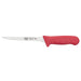 The Winco Boning Knife features a stamped blade, which provides a lightweight yet robust performance, ideal for the fast-paced environment of a professional kitchen. Its polypropylene handle, in a striking Stal red, offers a comfortable and secure grip, reducing hand fatigue during extended use. The handle is also NSF certified, ensuring it meets the highest standards for safety and sanitation in food service.