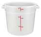 Bring efficiency and style to the kitchen with the Winco 6qt Round Storage Container. This versatile container, crafted from durable white polypropylene (PP), is designed to meet the rigorous demands of a busy restaurant environment. With a generous 6-quart capacity, it provides ample space for storing a variety of ingredients, from fresh produce to prepared sauces and everything in between.