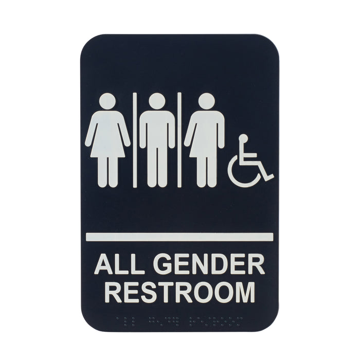 The Winco All-Gender Accessible Sign boasts a sleek black background with a white imprint, providing high contrast for easy visibility. The inclusion of braille ensures that visually impaired guests can navigate your establishment with confidence and ease. This thoughtful design not only meets ADA compliance but also demonstrates your commitment to inclusivity and accessibility.